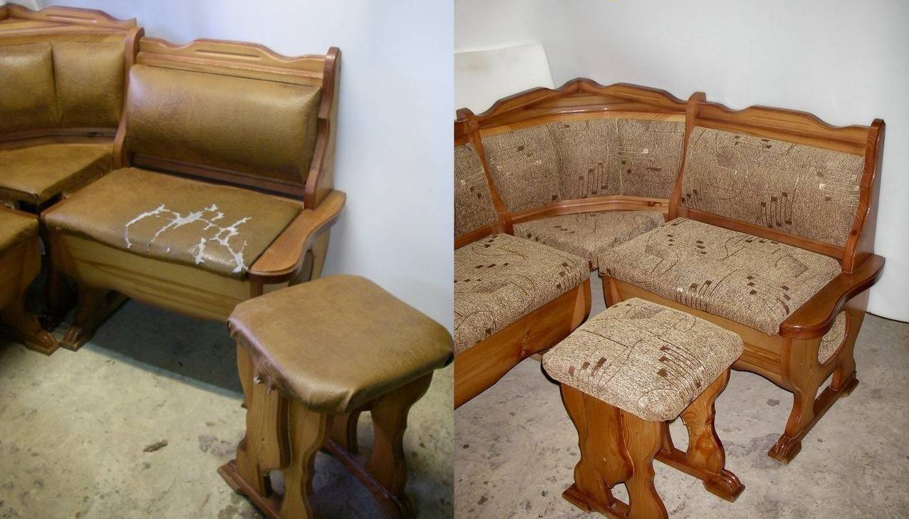 Вначале на детали необходимо наклеить поролон с плотностью кг/м3. Мягкими элементами уголка для кухни принято считать спинку и сиденье. В процессе подготовки спинки к обивке необходимо вырезать прямоугольный кусок поролона шириной на 4 см больше ширины спинки. Запас материала понадобится для загиба поролона на торце детали.