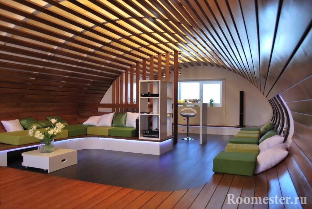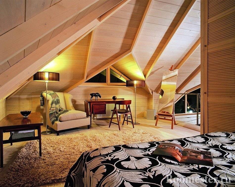 Определяя назначение, по которому будет использоваться эта часть здания, нужно помнить об ее конструктивных особенностях: наклонные стены и потолок, скосы по краям, возможно наличие трубы, проходящей через чердак.