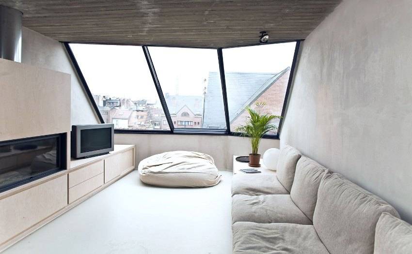 - Мансардная квартира никогда не оснащается обыкновенными окнами: они обычно нестандартной формы и размера, наклонные и так далее. При всей романтике от этого может возникать куча проблем: например, в солнечную погоду их не получится занавесить, а при потребности будет проблематично заменить. Это еще не повод отказываться от покупки, но стоит заранее определиться, готовы ли вы к такому.