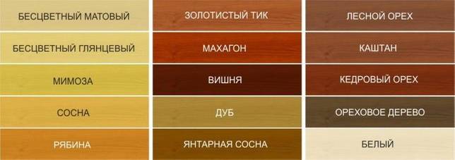 В каталоге компании можно найти богатый выбор лессирующих оттенков, каждый из которых смотрится по-своему оригинально и презентабельно. Колеровка способна соответствовать вашим пожеланиям и выбираться под особенности древесины