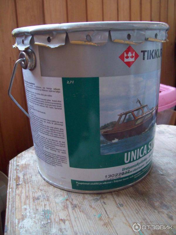 Можно же было взять подешевле, но нет — понадеялись на Тиккурилу, до этого был только позитивный опыт. Взяли Тиккурилу Уника Супер 90, полуглянцевый яхтный лак.