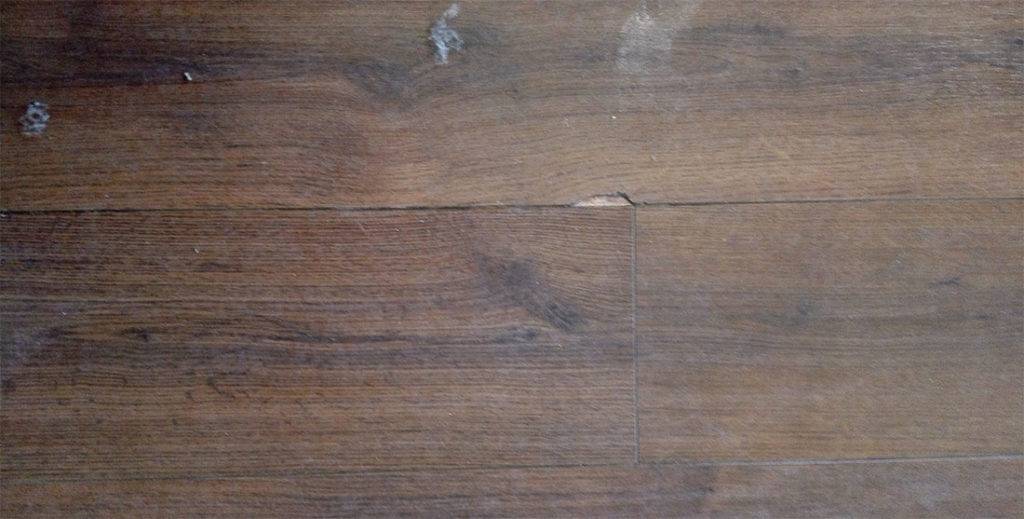 Не качественная стыковка создает щели между панелями и скрип при хождении по полу, как на фото ниже.