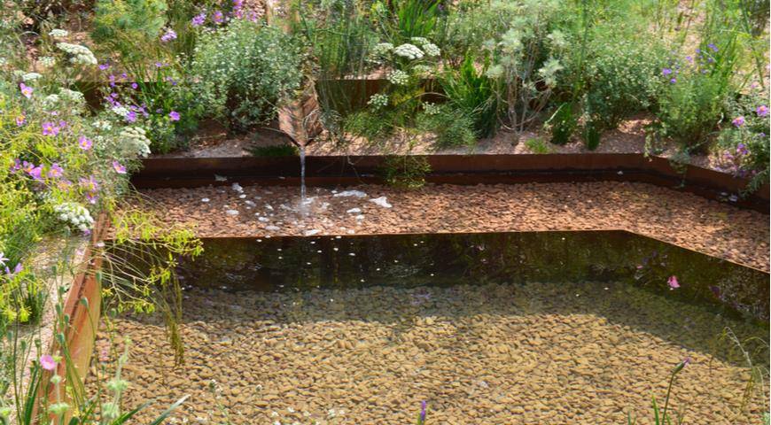 Пруды и водные объекты возвращаются в новом прочтении: они упрятаны в стальные или каменные берега. Вполне вероятно, что это возрождение связано со способностью воды создавать спокойное, умиротворяющее пространство.