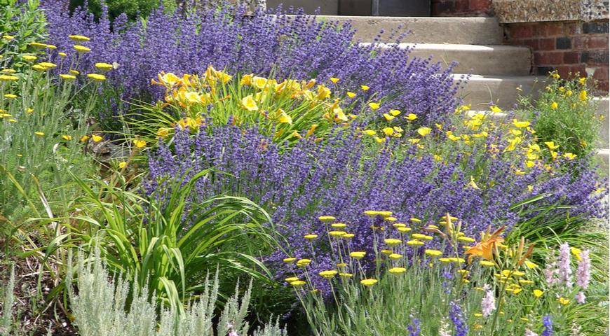 - Многолетних растений. Высаживать цветы каждый сезон дорого и непрактично. Лучше заменить их на многолетники, а в качестве кустарников выбирать хвойные растения.