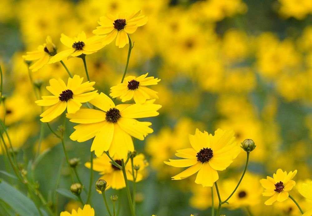 Соцветия однолетнего кореопсиса гораздо мельче, чем у самой распространенной многолетней разновидности кореопсиса ланцетного, однако цветет эта форма гораздо более длительно и обильно. Чтобы растение давало самосев, со второй половины лета необходимо перестать срезать отцветшие соцветия.