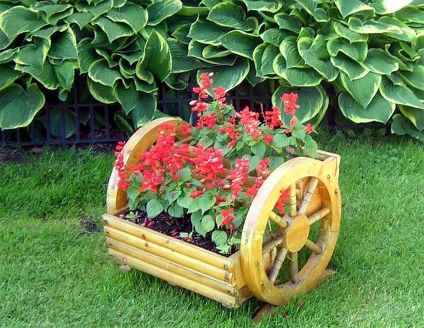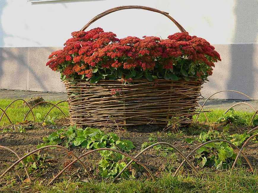 Точки внимания. Это станет изюминкой цветущего сада. Такой точкой может быть оплетенная беседка, забавная композиция с цветами, нестандартное использование вместо клумбы совершенно неподходящих вещей (старая ванна, багажник автомобиля, ненужный чемодан и все, чему еще можно найти применение).