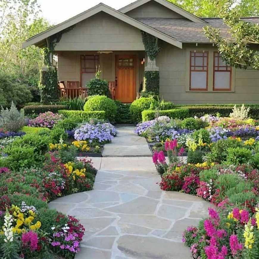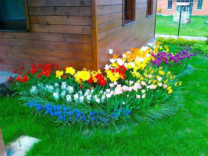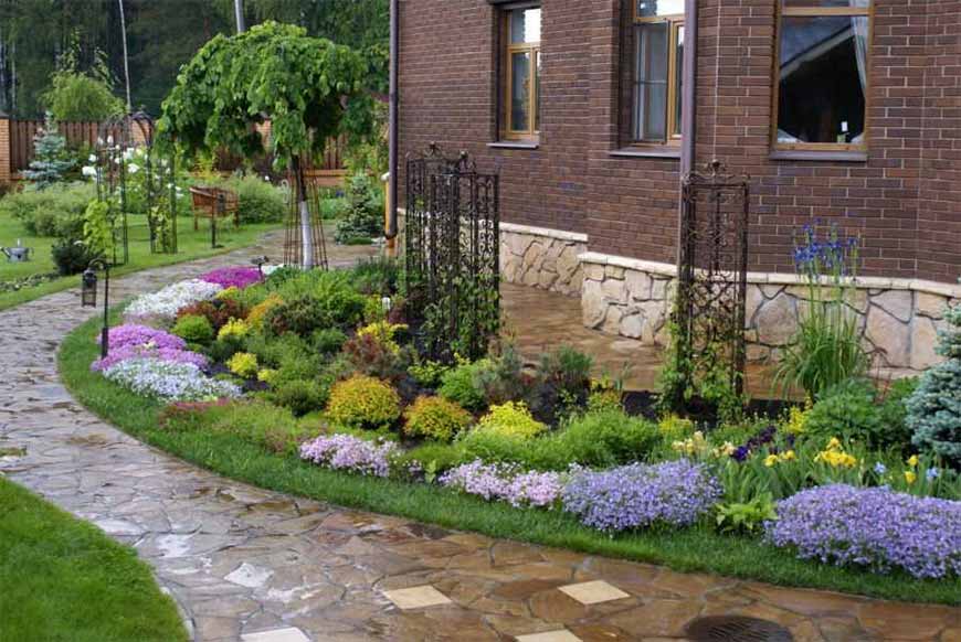 миксбордеры. Не имеют определенной формы, могут быть засажены абсолютно различными растениями. Они высаживаются параллельно дорожкам дома. Единственное правило, которое необходимо соблюдать, таково: высокие цветы сажаются дальше от тропинки, чем низкие. Это позволяет сделать обзор всех растений более полным.