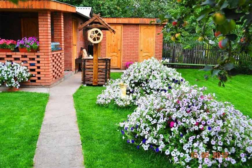Не стоит оставлять пустыми углы и все внимание бросать на центр участка или возведение массивной клумбы возле дома.