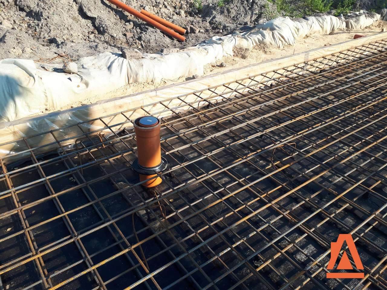 Арматурный каркас связывается в соответствии с выбранной схемой. Продольные элементы выполняют из толстой рифленой арматуры. Поперечные – из гладкой.