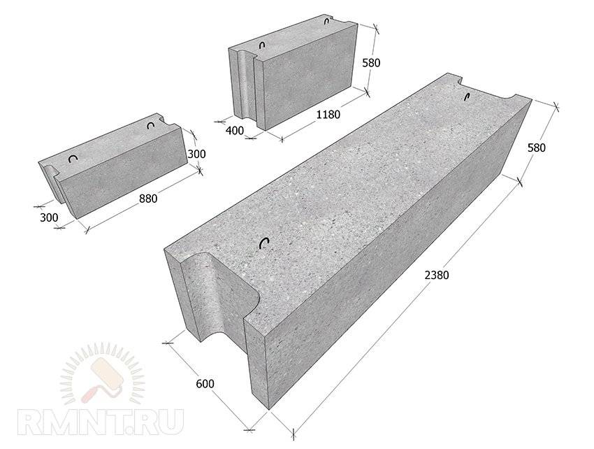 Типы фундаментных бетонных блоков: