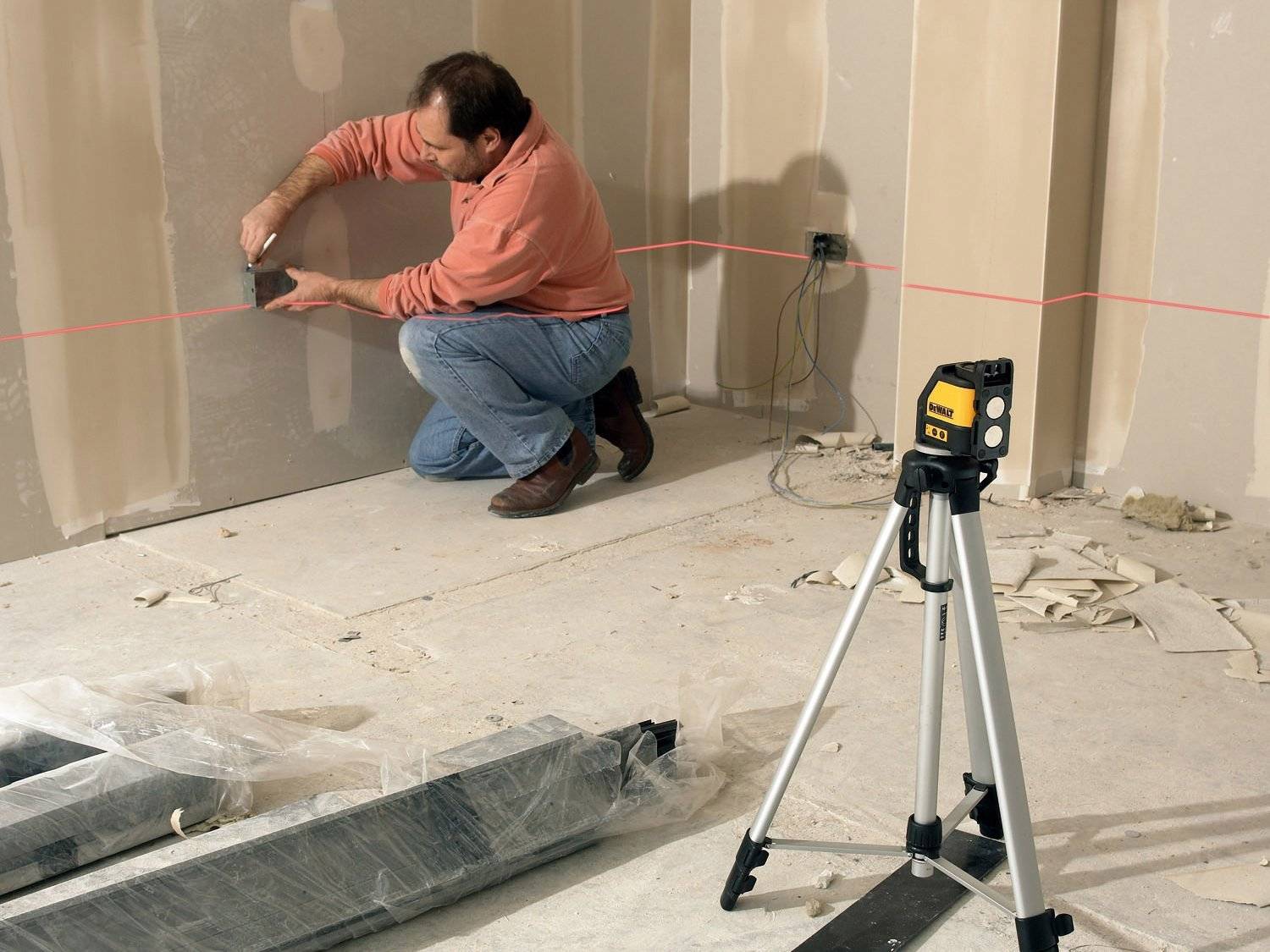 У большинства людей дома нет лазерного уровня, поэтому подробно будут описаны 2 метода проведения разметки с использованием обычного строительного уровня. Стандартная разметка включает следующие шаги: