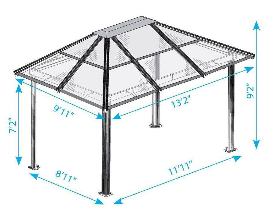 Также из поликарбоната можно сделать раздвижные окна, что является хорошим способом защитить беседку от дождя осенью и снега зимой. Поскольку поликарбонат удобнее всего использовать, он позволит в короткие сроки изготовить оконные рамы. Из этого материала можно возводить сложные конструкции с арками и другими конструкциями.