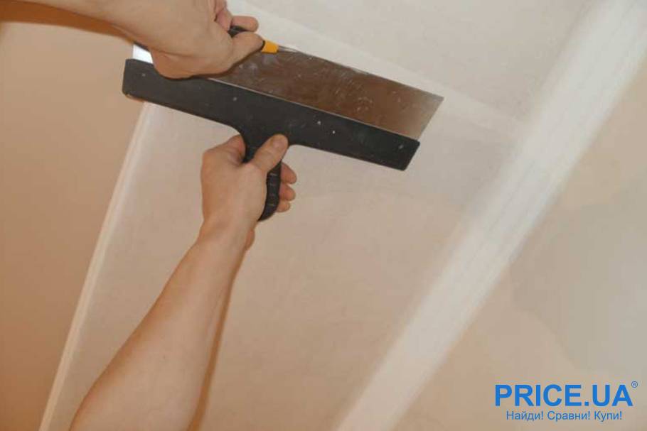 Процесс приклеивания стеклохолста всегда начинается от угла потолка или стены, с тщательной отработкой стыков и приглаживанием для лучшей сцепки специальным обойным шпателем (процесс полностью идентичен наклейке обоев)