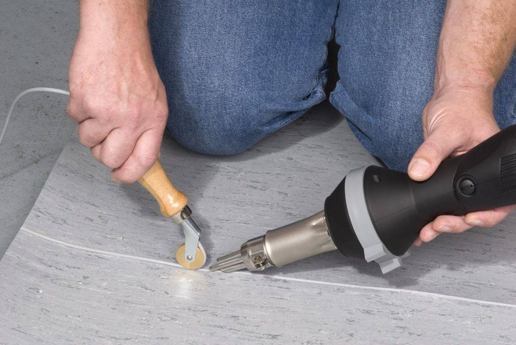 Главным инструментом для починки линолеума является нож. Тупым ножом не раскроить даже тонкий материал. В строительных магазинах продаются специальные инструменты для ПВХ покрытий.