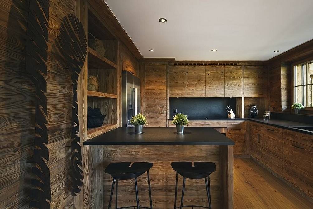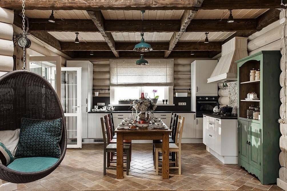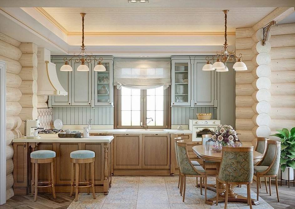 Оформление интерьера кухни в деревянном доме