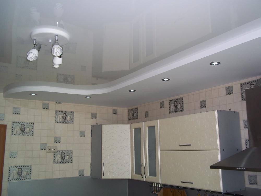 - если всё делать самостоятельно, то на двухуровневый потолок на кухне уйдет порядка 4 дней, от момента закупки крепежа до момента финишной отделки;
