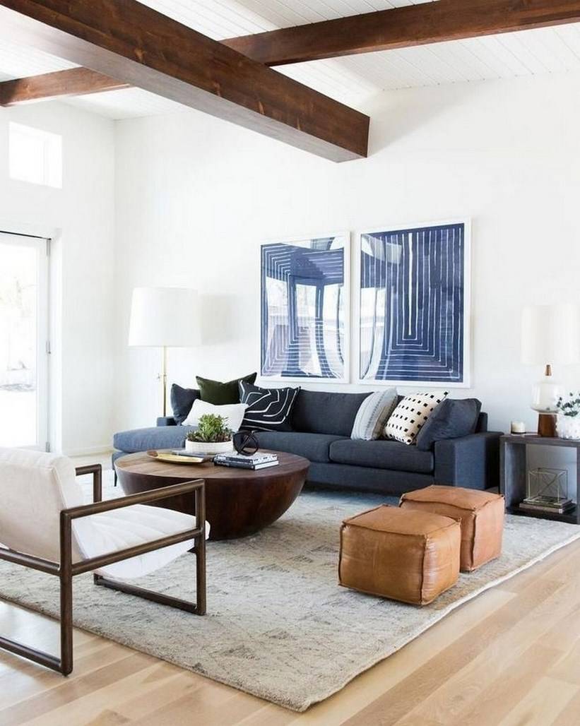 Изучая по фото дизайн современных интерьеров, можно отметить, что именно дивану отводится главенствующая роль в гостиной. Среди прочей мягкой мебели — кресла различных модификаций и пуфы.