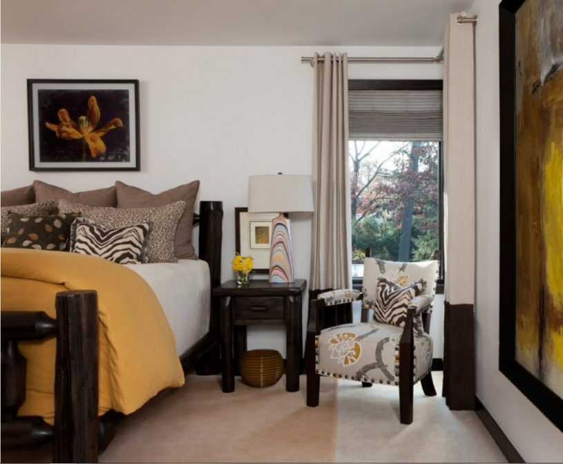 И это еще далеко не все приемы! Можно ведь немножко освежить дизайн спального гарнитура при помощи замены чехлов на стульях и легкой мягкой мебели. Иногда достаточно просто применить новое покрывало с цветами, природой (или просто густо-желтого либо салатового цвета). Покрывало добавит частицы лета в настроение и обстановку Вашей уютной спальной комнаты.