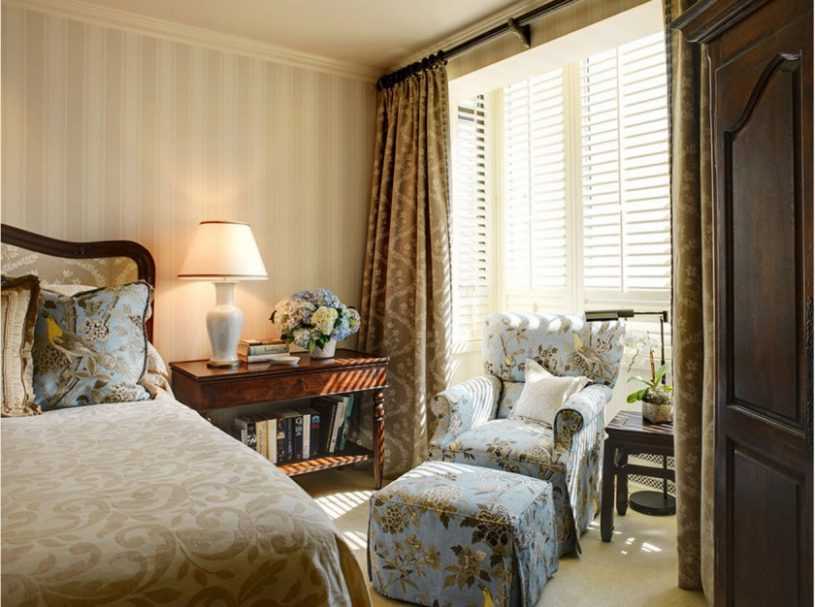 - В просторных спальнях желательно использовать яркие, глубокие цвета на шторах, обивке, обоях.