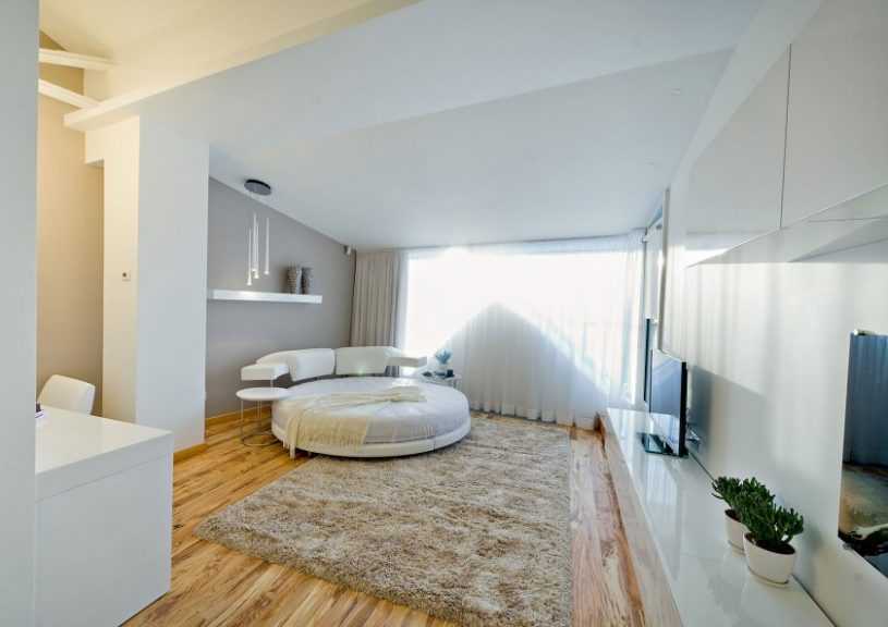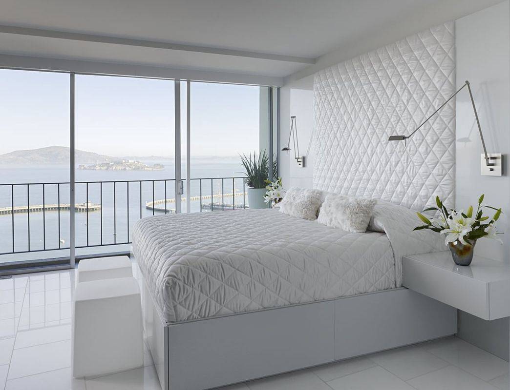 Белая спальня — это востребованная тенденция в дизайне интерьера. Хотя вездесущая белизна в комнате может показаться немного прохладной и невыразительной, но дизайн спальни, в котором этот цвет царит, является лучшим доказательством его бессмертия. Любители гарнитура спальни в белом цвете обязательно зададут себе вопрос: будет ли такой монохроматический интерьер скучным? Конечно, нет! Очевидную монотонность в дизайне можно легко преодолеть с помощью разнообразного материала или необычного элемента расположения. Отличным решением для украшения пространства спальни с белым гарнитуром, будет выразительная текстура тканей, которыми покроете кровать. Белый гарнитур обычно является синонимом минимализма и простоты, которая далека от монотонности.
