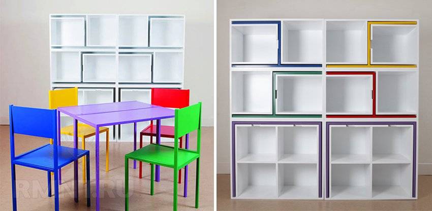 Варианты трансформации, которые мы покажем ниже, достаточно масштабные и не попадают в ранее выделенные нами группы трансформируемой мебели.