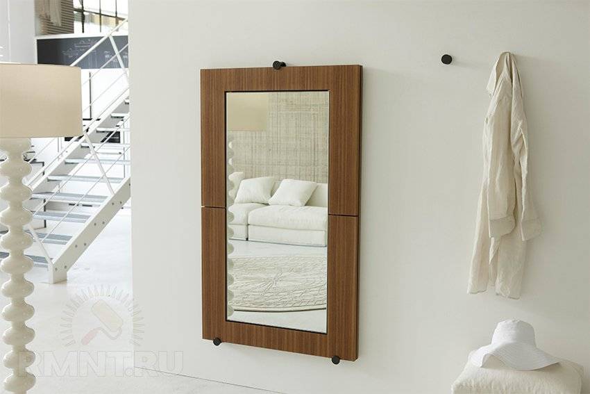 Женщины оценят стол-зеркало. Пообедав — сложите ножки и повесьте стол на стену, развернув зеркальной стороной. Крепежи под «зеркало» можно установить в коридоре, а при необходимости его снимать и переносить.