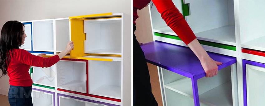 Передовые разработки предлагают всё большее использование различных моделей. Современные устройства обеспечивают бесконечное множество вариантов дизайна. В эту группу входят столы и стеллажи. Наилучший вариант превратить одну из стен в место для хранения ваших личных вещей с помощью вот таких интересных конструкций.
