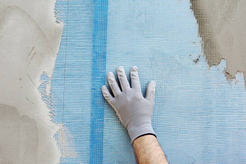 В зависимости от типа штукатурных работ, рекомендуется использовать армирующую сетку для улучшения адгезии
