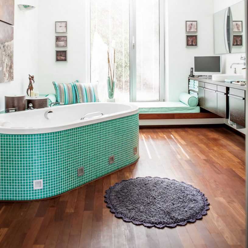 Выбирать коврик в ванную для пола следует, исходя из ее дизайна