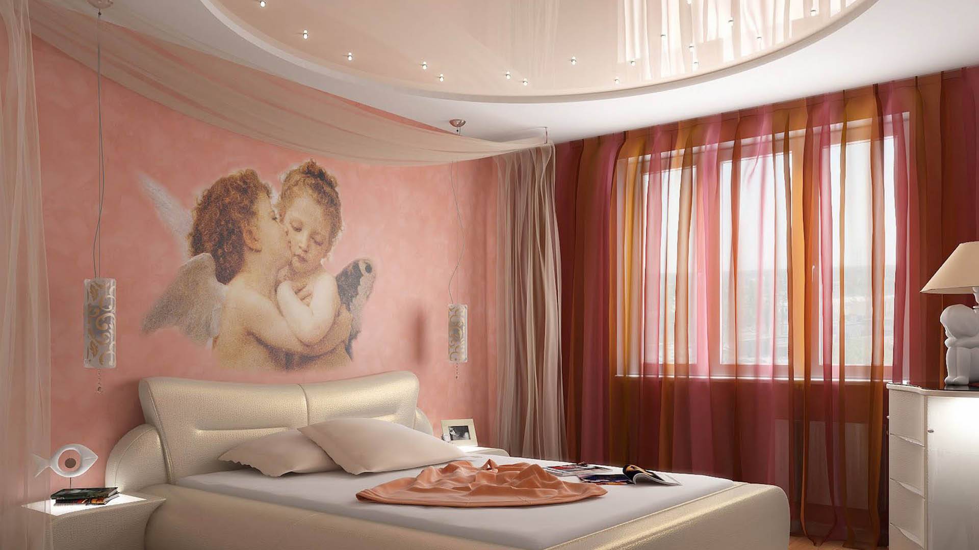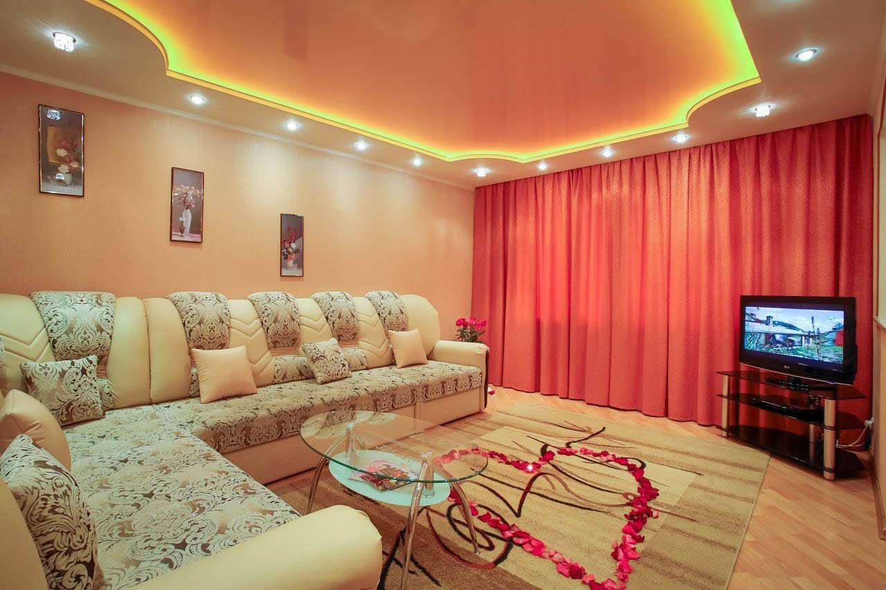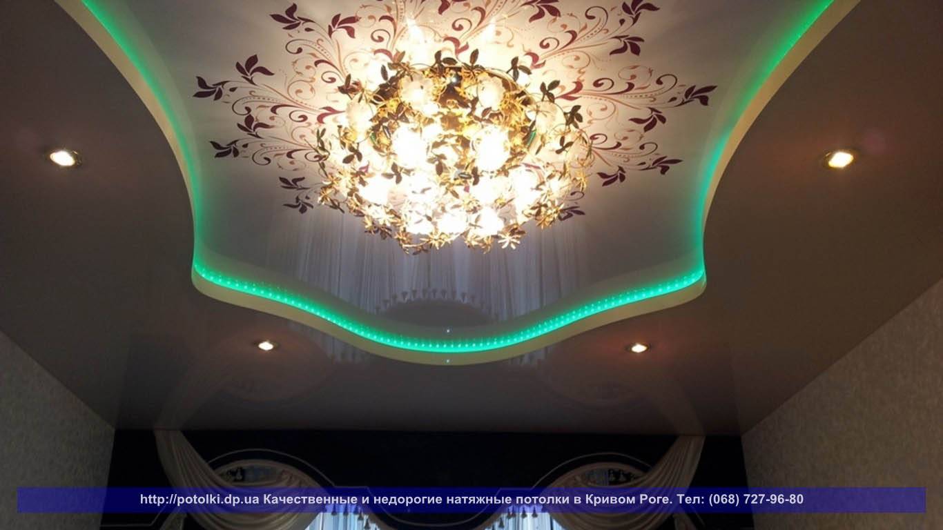 Главное – не переборщите с интенсивностью освещения и оттенками на многоуровневом полотне. Пестрые, кричащие тона приберегите для других помещений. Например, детской.
