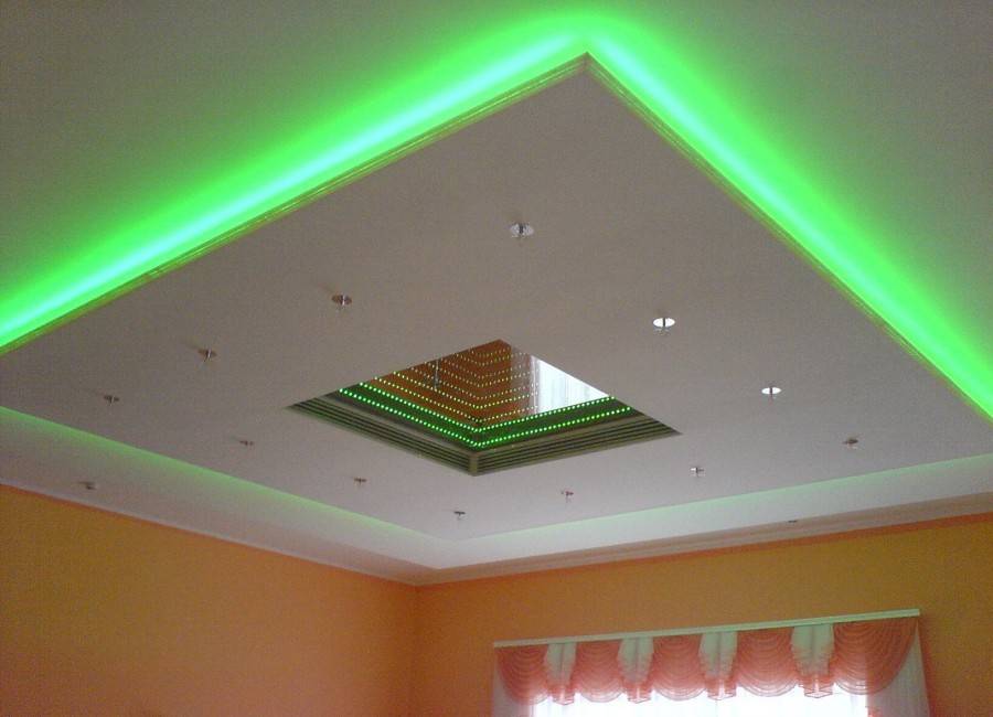 Потолочное покрытие из строительного гипсокартона можно делать любой конфигурации, это позволяет дизайнерам воплощать в реальность самые разнообразные идеи.