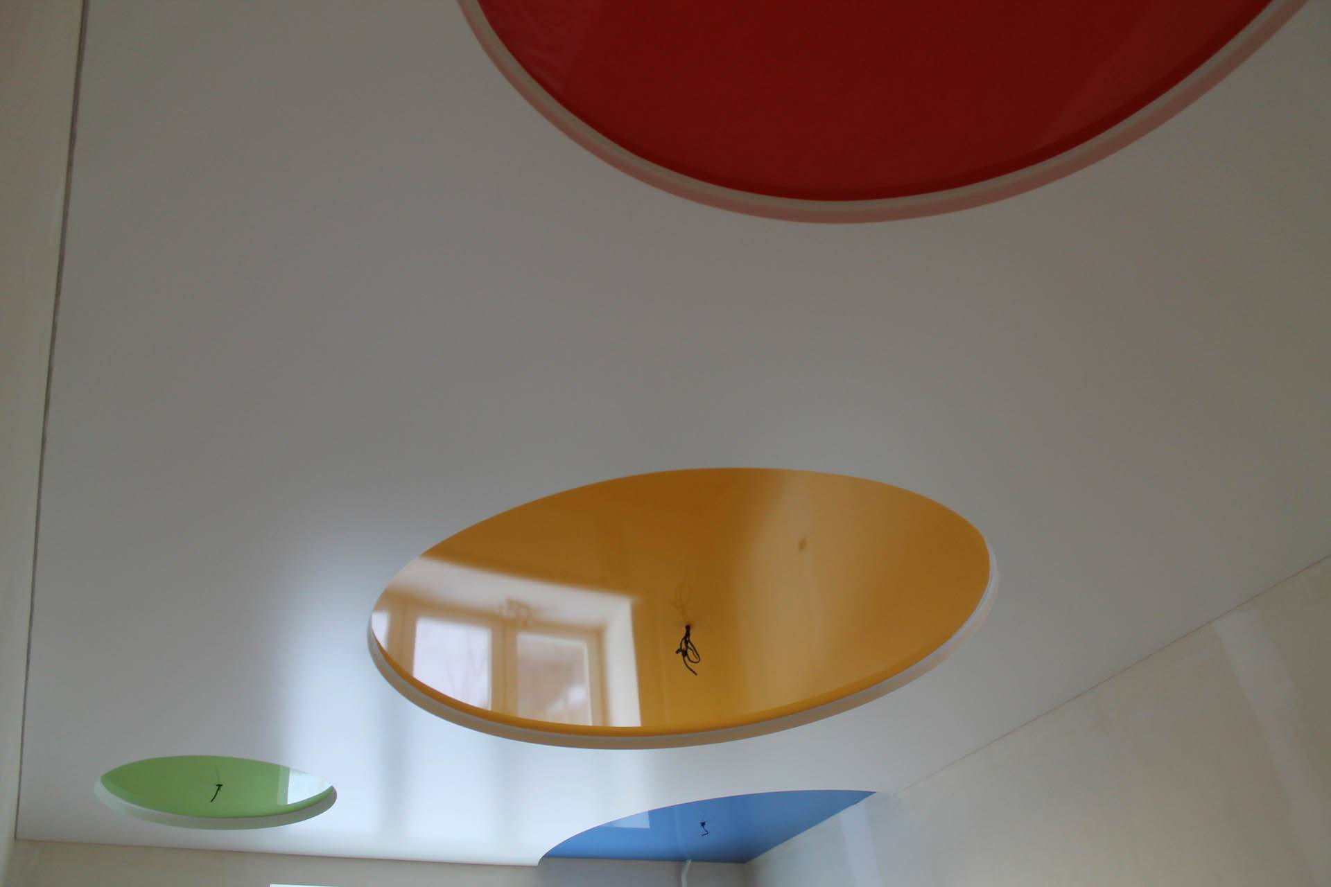 Этот вариант исполнения потолочных конструкций реально претендует на статус шедевра. Дизайнерское воображение в данном случае практически неограниченно. Могут создаваться самые разные формы, сложные конструктивные решения, когда и цветовым фантазиям есть, где разгуляться.