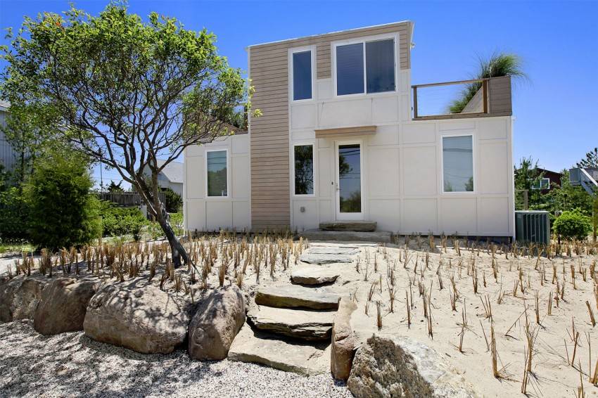 Интересный проект дома в дюнах Amagansett, Нью-Йорк, на Montauk Highway. Первый этаж состоит из 4-ёх модулей, в которых размещаются кухня, столовая, гостиная.