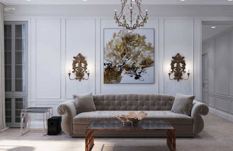 В нынешнем году популярно вносить частичку искусства в каждую комнату. Это выражается в изобилии различных картин на стенах. Вы можете встретить различные фотографии или репродукции известных картин в кухне, спальне, гостиной и даже ванной. В этом случае молдинги станут отличным способом обрамления этих картин. С их помощью вам удастся сделать обычную рамку или создать целостную композицию – все зависит от вашей фантазии.
