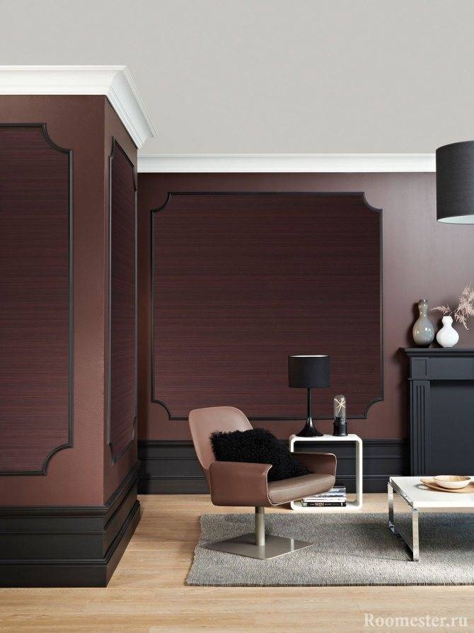 На однотонных поверхностях узкий молдинг контрастного цвета придаст стенам нарядность, подчеркнет изысканности стиля.