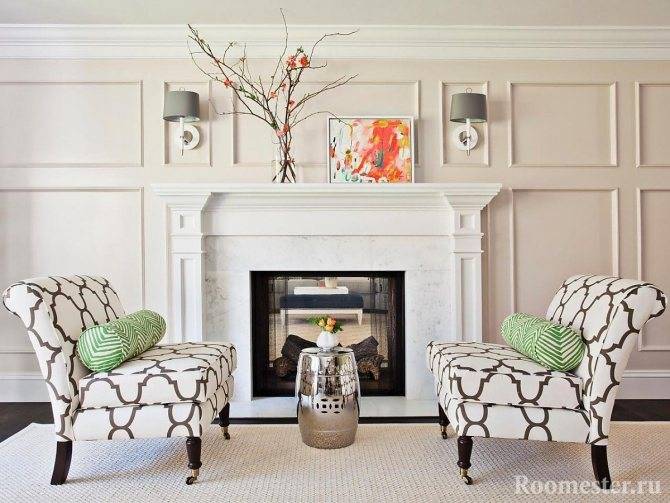 Классический цвет белый. Он выделяет оклеенные обоями с рисунком участки фигурными рамками, делит стены на многочисленные зоны, подчеркивает картины, рисунки, лепнину.