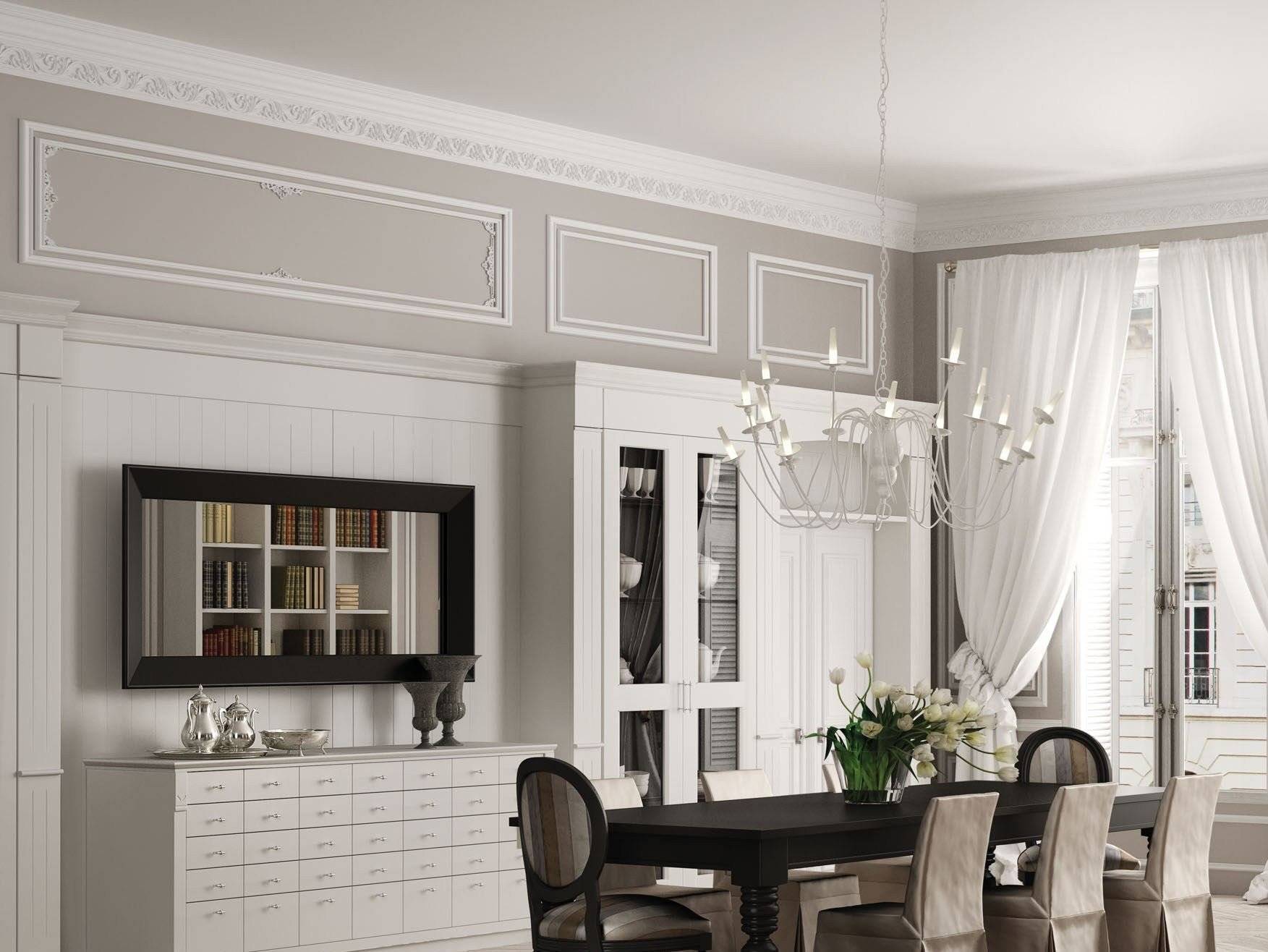 Для классических и исторических стилей важно правильно подобрать молдинги и создать с их помощью декоративное оформление и акценты в отделке стен. Больше всего подойдет средней ширины выпуклая полоса