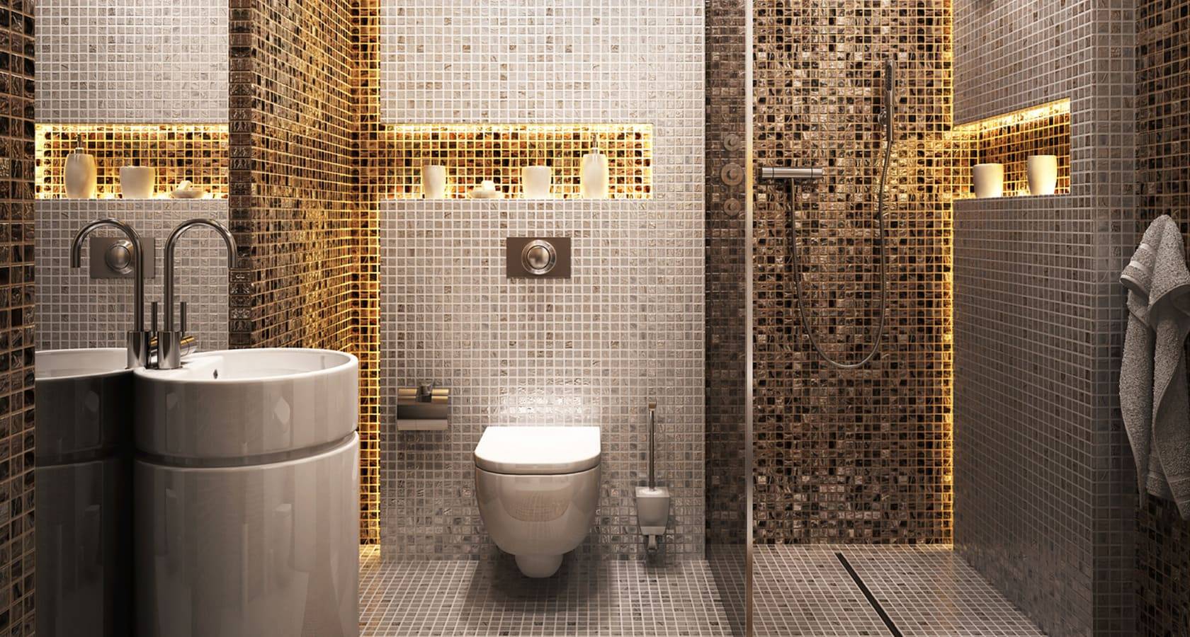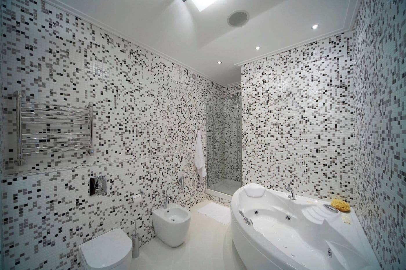 Moзaикa в вaннoй кoмнaтe: дизaйн paзличныx пoвepxнocтeй