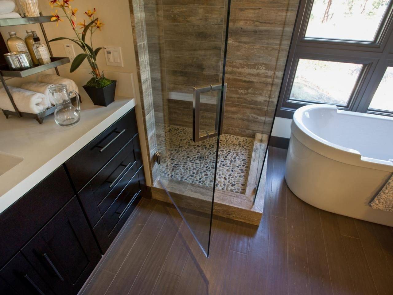 Чтобы максимально использовать пространство, установите в ванной стильную душевую кабину без поддона.