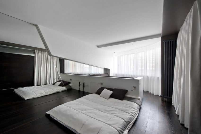 Глянцевая отделка спальни в минимализмеИсточник yellowhome.ru