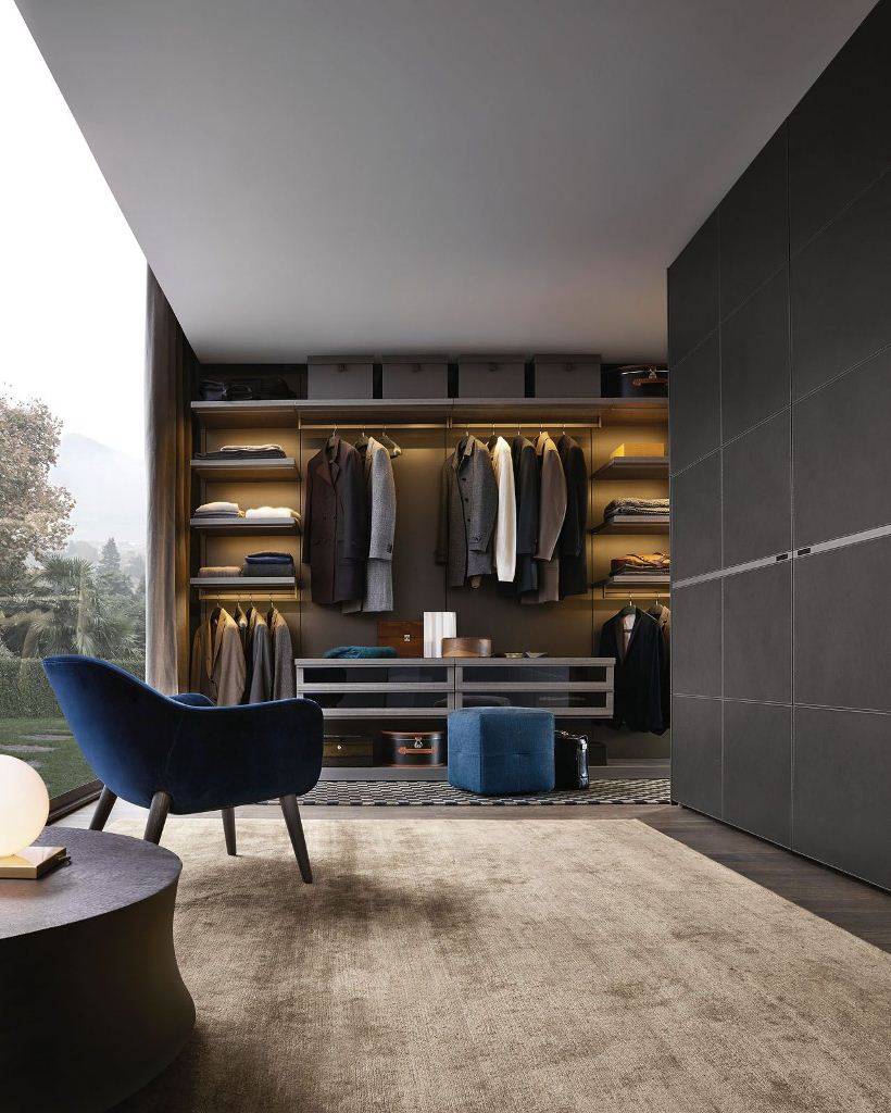 Шкафы, полки не должны занимать много свободного места, ведь у парня чаще всего мало вещей.