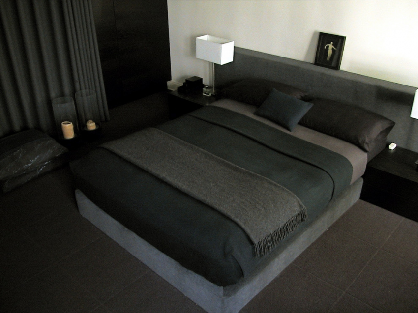 В то же время мужчины отдают предпочтение темным тонам (кофейный, черный или серый). Однако это не значит, что спальня будет мрачной, ведь при правильной игре цветами, выборе контрастов и декоре можно сделать по-настоящему стильную и яркую комнату. А вот декором здесь служит ковер с ярким рисунком, мебель насыщенных тонов и оригинальные рамки для фото или картин.