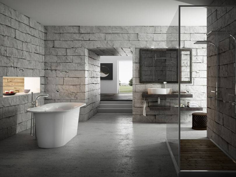 Исполнение может быть стандартным, минималистичным, богемным, технологичным и близким к индустриальному стилю. В этом сможет помочь мрамор, красивая плитка и сантехника, оформленная под старину.