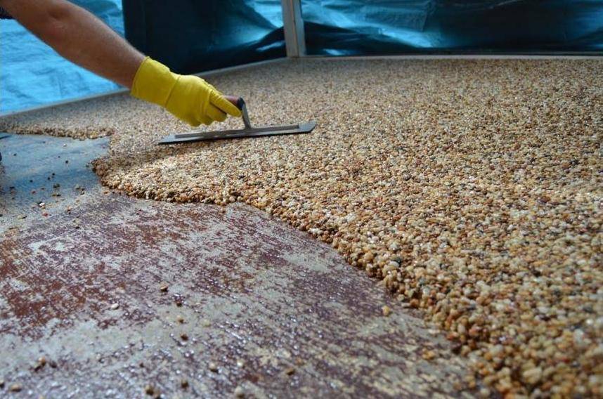 После застывания получается гладкая и ровная поверхность, в отличие от применения обычной цементной стяжки, на которой возникают шероховатости. Для монтажа такого покрытия не требуется профессиональная подготовка, процесс простой и не занимает много времени. Полы не боятся влажности, поэтому считаются универсальными для закрытых пространств и уличных территорий.