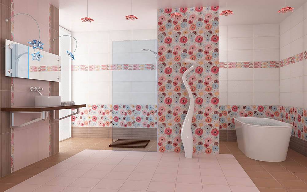 – настенная плитка с яркими цветами и разноцветными декорами