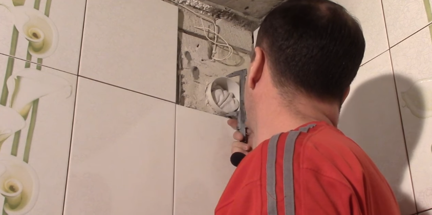 Нужно проявить максимальную осторожность, вырезая отверстия под трубы, настенные смесители, вентиляционные вентиляторы