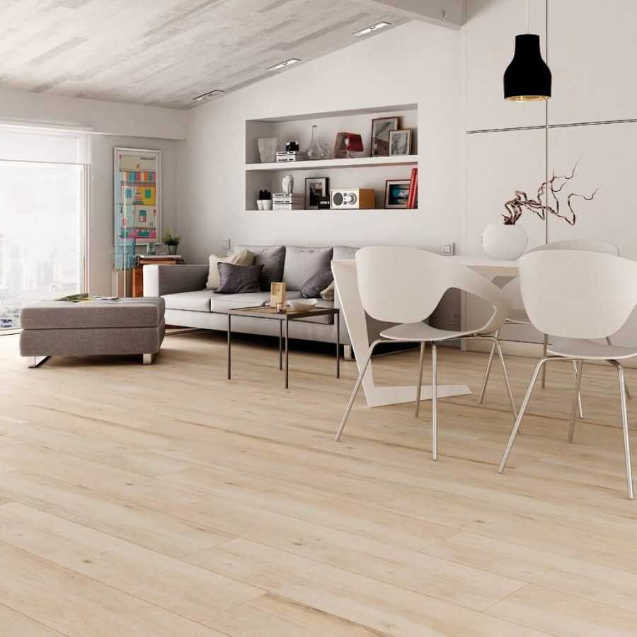 Кстати, если речь зашла о гостиных, то нельзя не отметить, что плитка выглядит совершенно убедительно даже в таких помещениях, которые днем залиты солнечным светом. Древесная текстура плитки настолько натуральна, что даже в лучах солнца практически невозможно отличить, настоящее ли это дерево или качественная имитация.