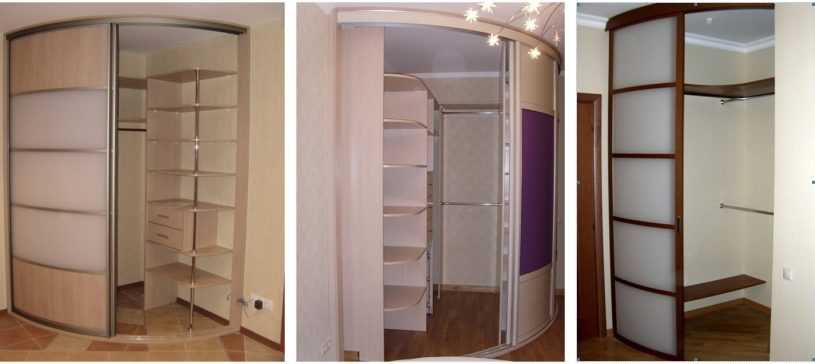 - Вогнутый. Фасад такого шкафа уходит внутрь, освобождая часть помещения.