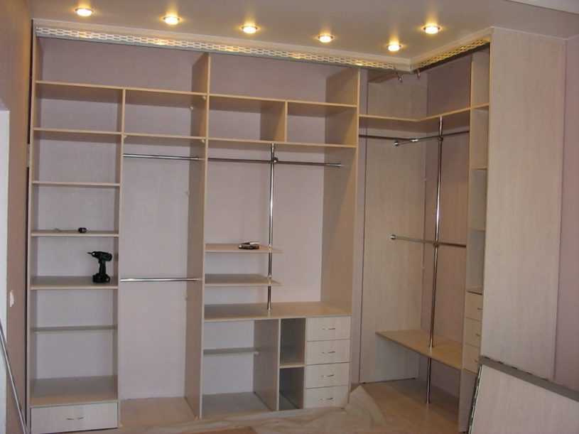 наверху хранят различные коробки, шляпки и другие вещи, которые нечасто используются в обиходе. Посередине располагается одежда, которую вы носите каждый день. Самый низ задействован для более тяжелых предметов.В угловой нише можно размещать штанги с рубашками и пиджаками.Зачастую, для хранения ремней и других мелочей встраивают ящики с выдвижным механизмом. Заказывая шкаф, нужно определить какие вещи вы собираетесь хранить, чтобы правильно рассчитать размер полок и ящиков