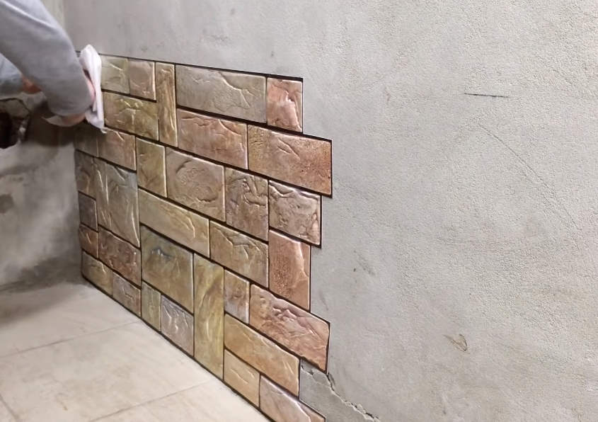 Искусственный камень дешевле своего натурального аналога, но так же прочен и красив. Ему отдают предпочтение благодаря его лёгкой обрабатываемости, простоте монтажа и гигиеничности. Камень обладает небольшим весом, поэтому его можно крепить даже на гипсокартон.